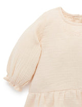 Langærmet bluse fra australske Purebaby. Blusen har fine flæsedetaljer og knapper i nakken, så du nemt kan på- og afklæde dit barn.